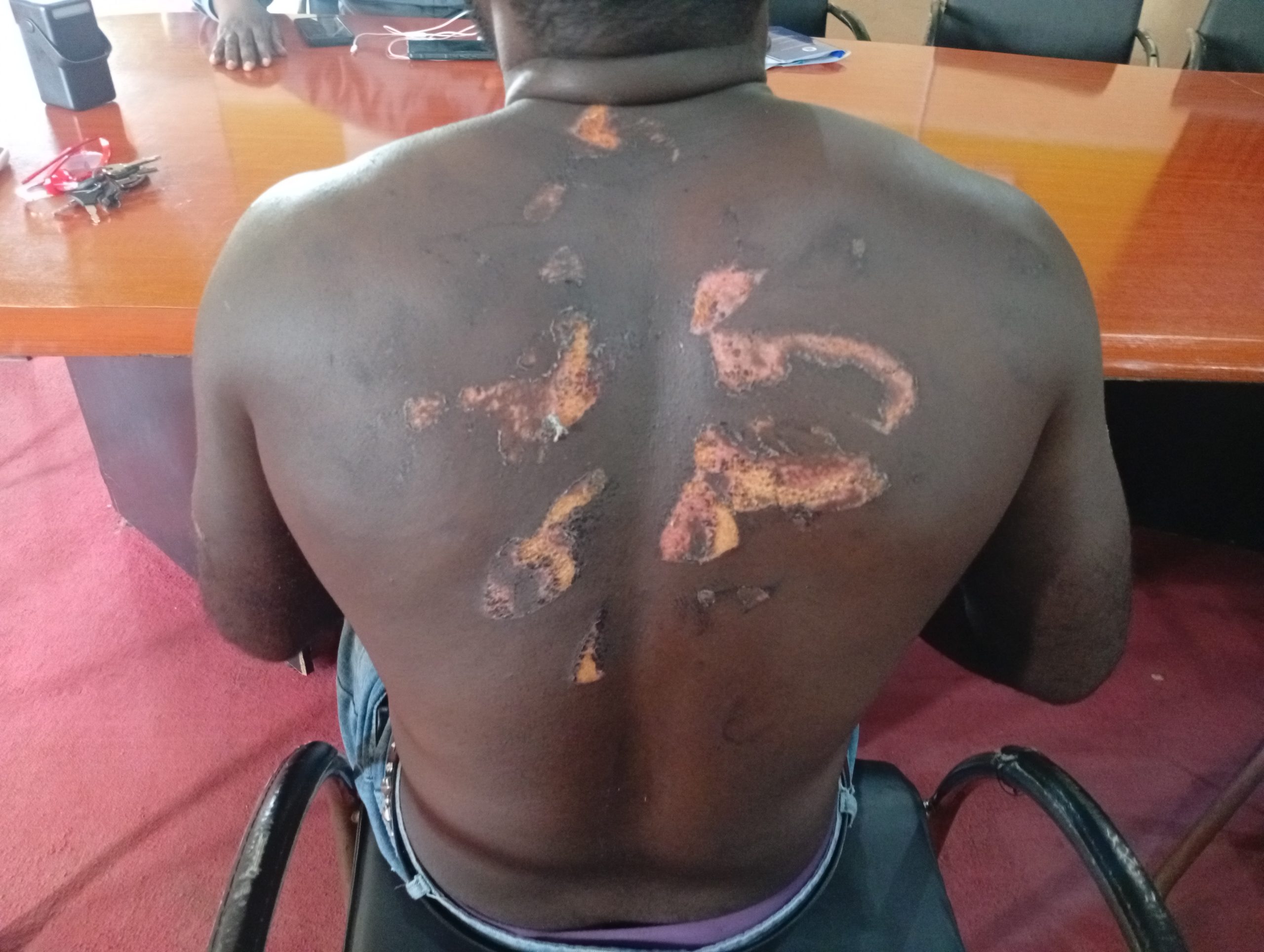 “That was when I realised the same man I had spoken with at the lounge was actually a police officer, a 2IC (Second-in-Command) to the OC (Officer-in-Charge) of the Anti-Robbery Squad. He told me to remove my clothes and slippers and started beating me with a cutlass and a big stick. I kept asking what I did wrong, but he said nothing,” he narrated tearfully.