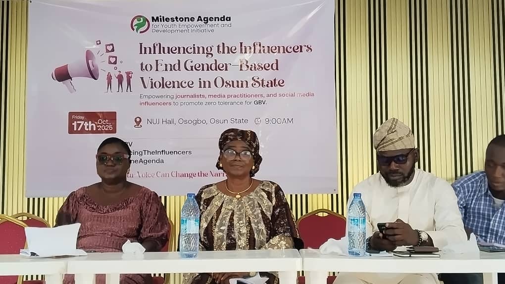 A renewed call has been made for journalists and media influencers to take the lead in the fight against gender-based violence (GBV) across Osun State. The call came during a one-day sensitization programme organized by the Milestone Agenda for Youth Empowerment and Development Initiative (MAYEDI) at the NUJ Press Centre, Osogbo, on Friday.