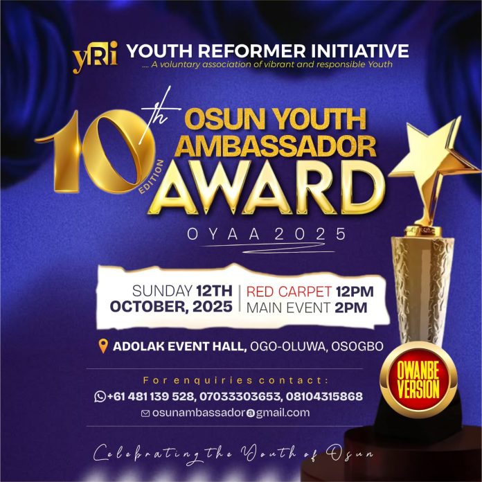 Seventeen outstanding young individuals from Osun State are set to be honoured today at the 10th edition of the Osun Youth Ambassador Award (OYAA), an annual recognition event celebrating youth excellence and community impact.