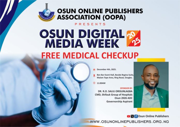 The Shifauk Group of Hospitals will offer free medical checkups at the Osun Digital Media Week 2025 scheduled to hold on Thursday, December 4, 2025.